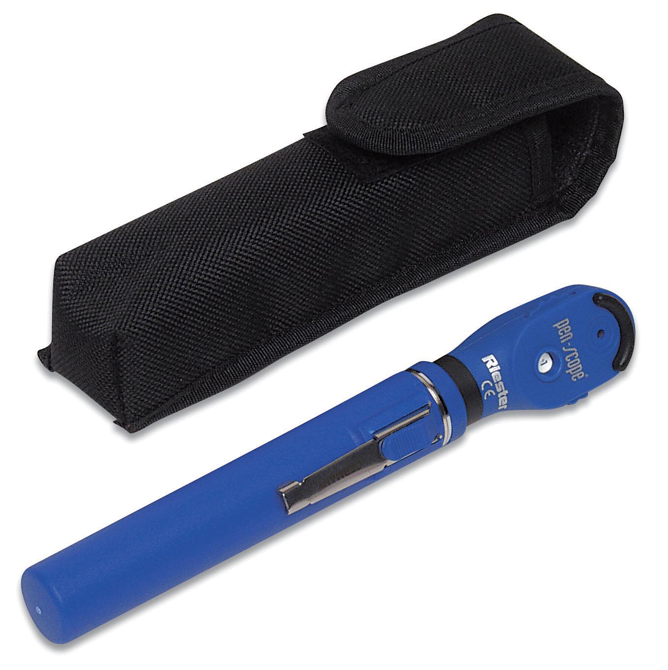 Standardmäßige 2,5-V-Beleuchtung. Schraubbarer Kopf mit Korrekturgläsern von 0 bis +20 und 0 bis -20 Dioptrien mit einzelner Großkreisblende.